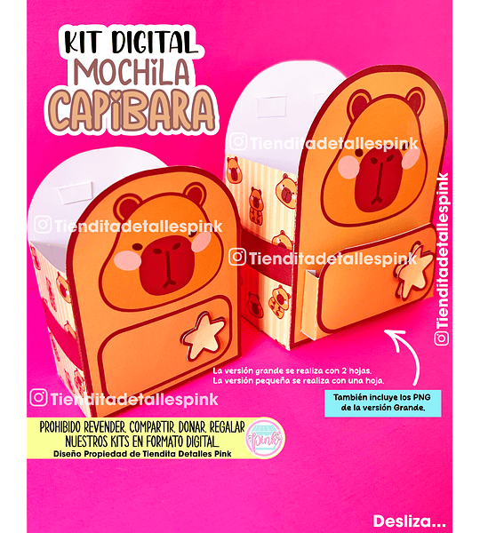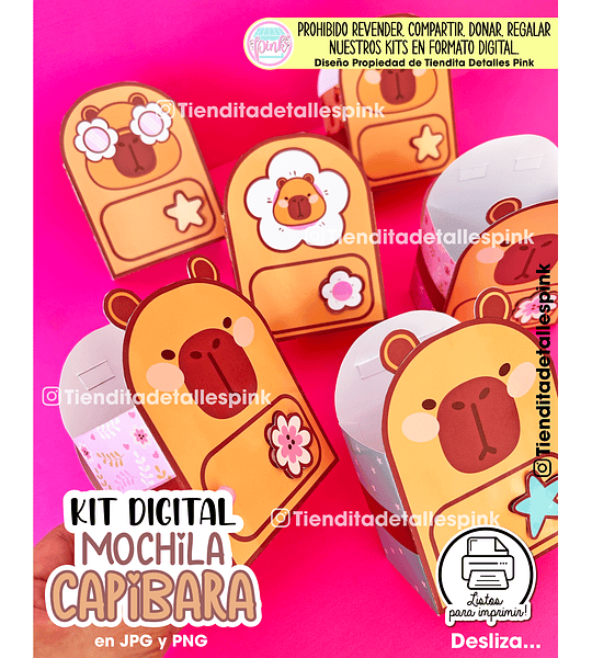Hazlo tu mismo@ en casa, KIT DIGITAL “MOCHILA CAPIBARA” . ¡Fácil de hacer! Este kit digital consiste en un empaque abierto tipo mochila con temát...